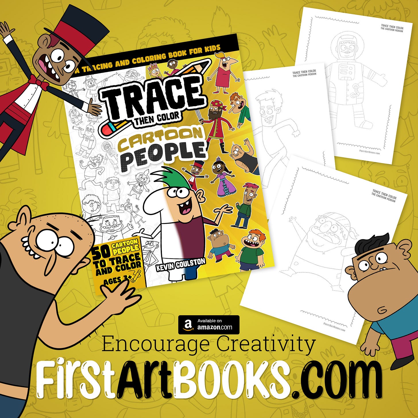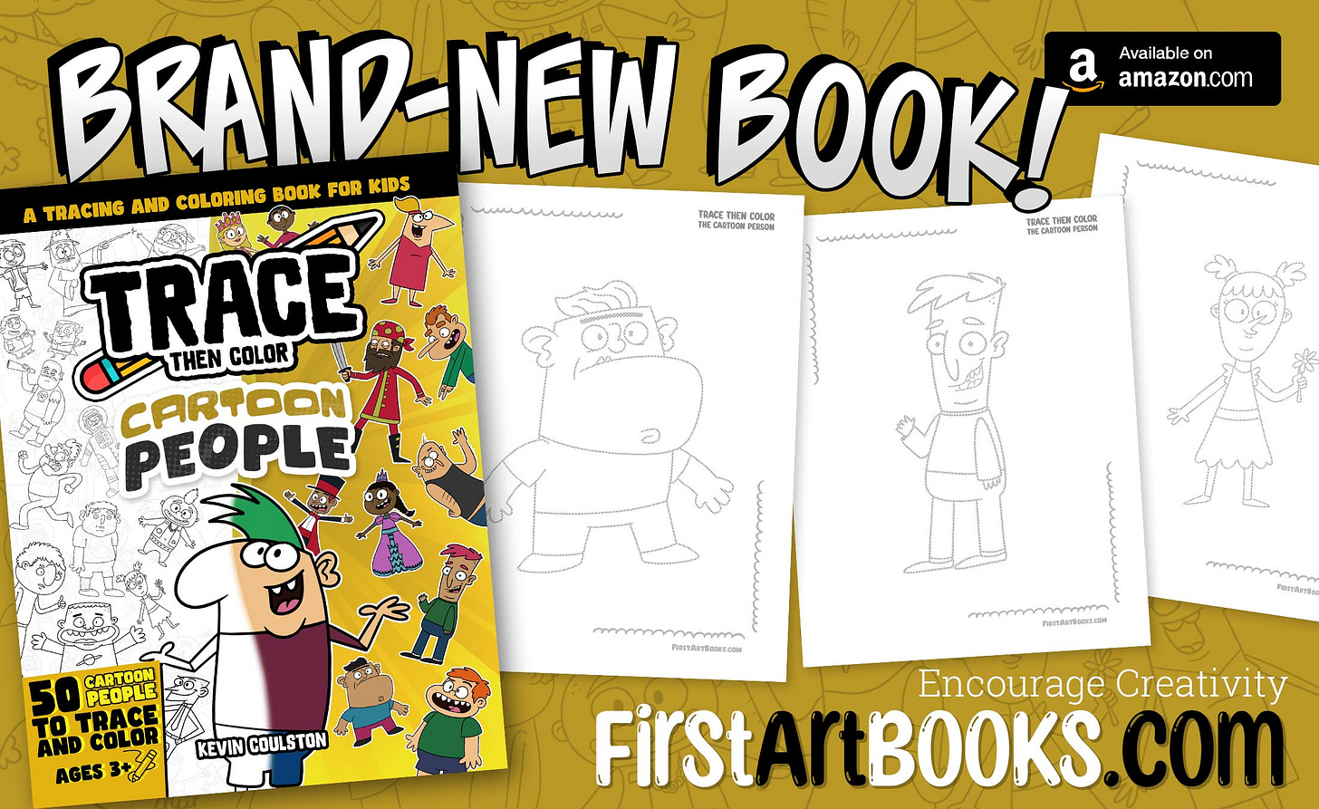 Kevin Coulston is an accomplished cartoonist, animator, and writer. He is the author and illustrator of over 80 (and still counting) children’s drawing books available here on FirstArtBooks.com. Kevin has also authored numerous kid-friendly comic book series, including “Dylan McVillain: A Super Villain with the Best Intentions” and “The Adventures of a 4th Grade Space Captain,” along with the Children’s Picture Book series “Alexis and the T-Rexes.”