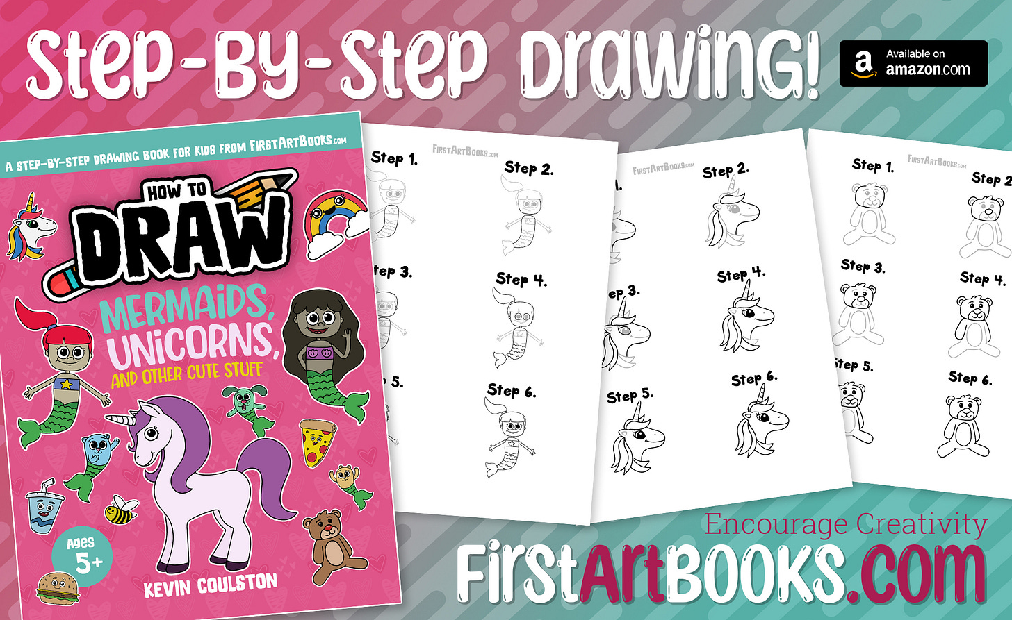 I hope your child has fun with today’s free step-by-step page. Learning How to Draw a Snail is a great creative warm-up, and it’s a perfect introduction to the drawing style and six-step process used throughout How to Draw: Mermaids, Unicorns, and Other Cute Stuff. If they enjoy this page, they’ll have a great time exploring the rest of the book—and the wider series of drawing books designed to keep kids creating, imagining, and expressing themselves through art.