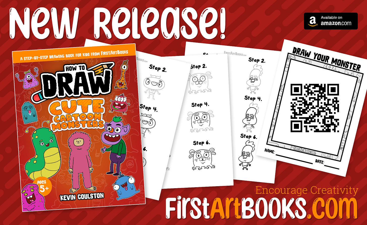 Kevin Coulston is an accomplished cartoonist, animator, and writer. He is the author and illustrator of over 80 (and still counting) children’s drawing books available here on FirstArtBooks.com. Kevin has also authored numerous kid-friendly comic book series, including “Dylan McVillain: A Super Villain with the Best Intentions” and “The Adventures of a 4th Grade Space Captain,” along with the Children’s Picture Book series “Alexis and the T-Rexes.”