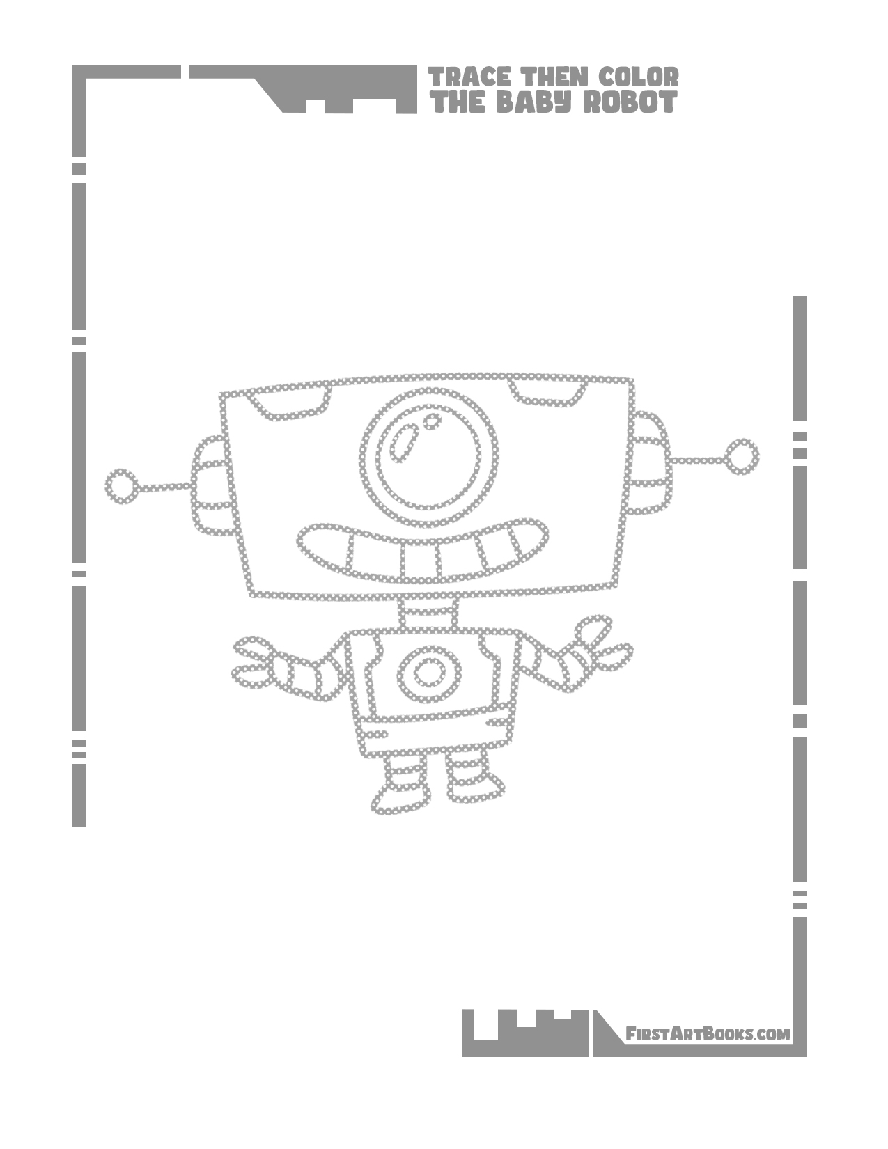 Inside, you’ll find 50 brand-new pages featuring Dinosaurs, Animals, Robots, Cartoon People, Aliens, Creatures, and more! Every illustration is drawn in a fun, cartoony style that’s simple to trace and easy to color, making it perfect for kids of all skill levels. Each page begins with bold, clear outlines to guide young hands through the tracing process, helping to build fine motor skills, coordination, and line control. Once finished tracing, kids can grab their favorite crayons or markers to bring each design to life with their own colors and creativity.